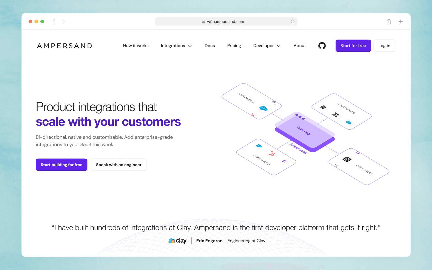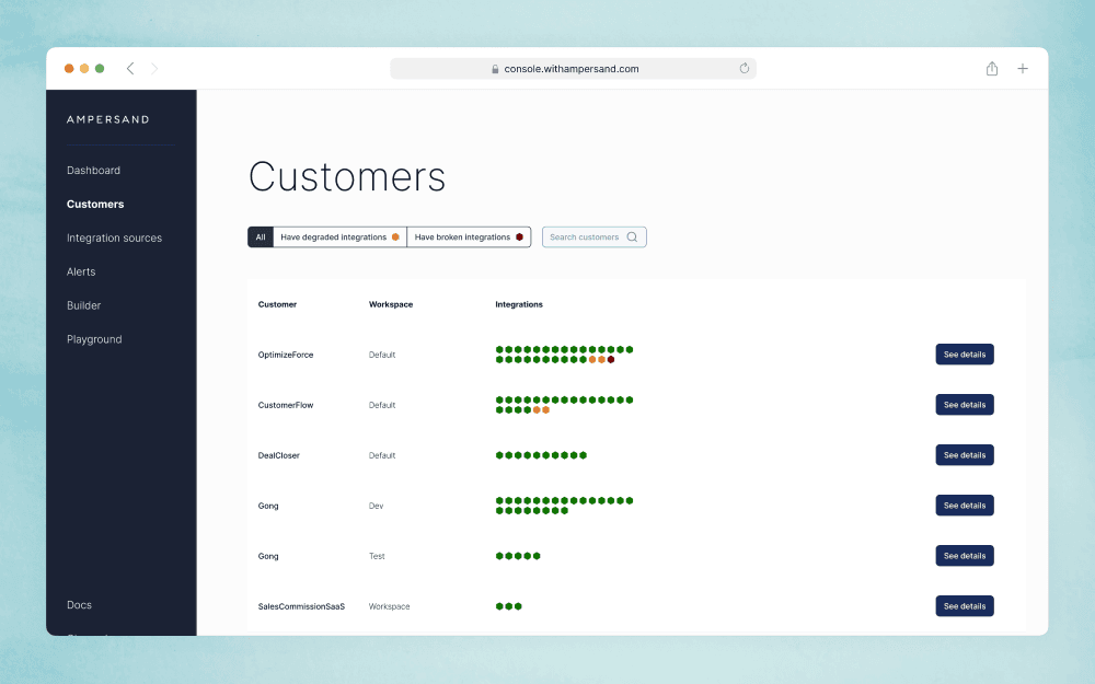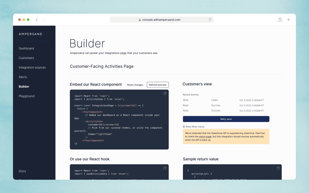 From the beginning, we had conviction that self-serve would be a differentiator. Most other integration platforms in the space required going through a sales process, and Ampersand is uniquely positioned to appeal to developers who often prefer to try it out without talking to sales.